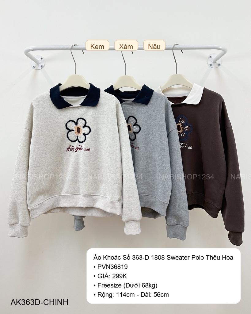 (G30K) Áo Khoác Số 363-D 1808 Sweater Polo Thêu Hoa