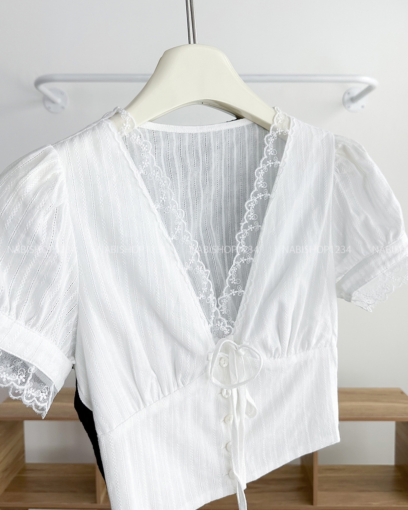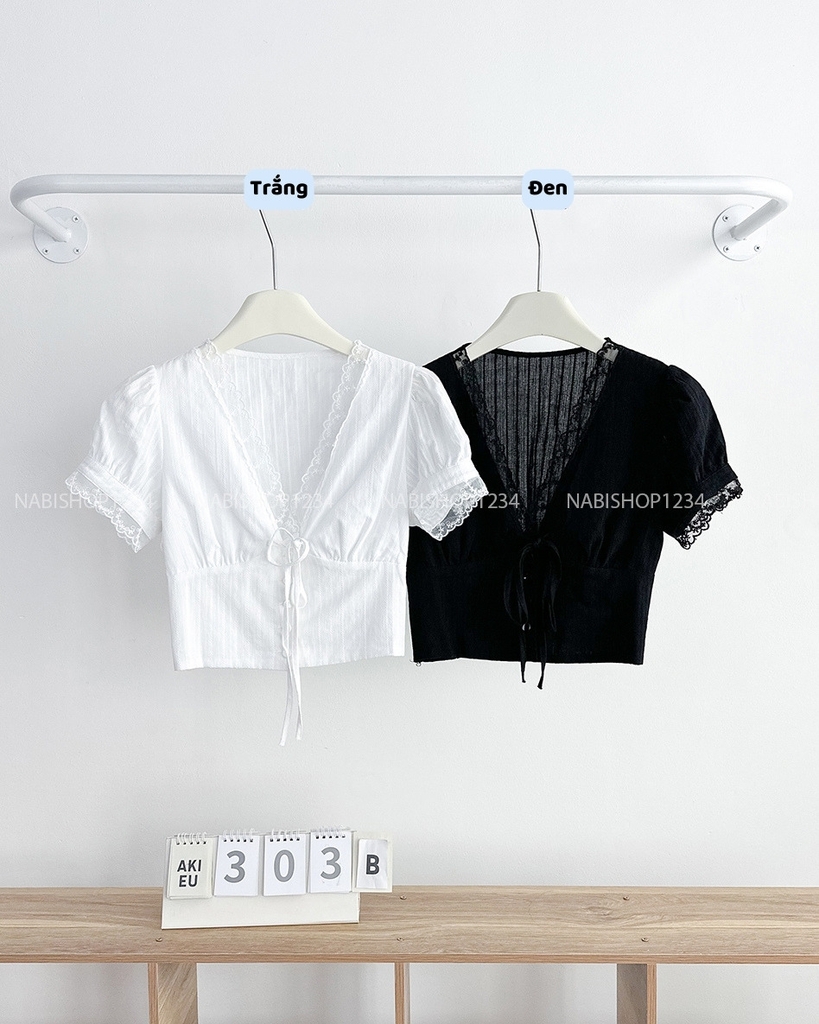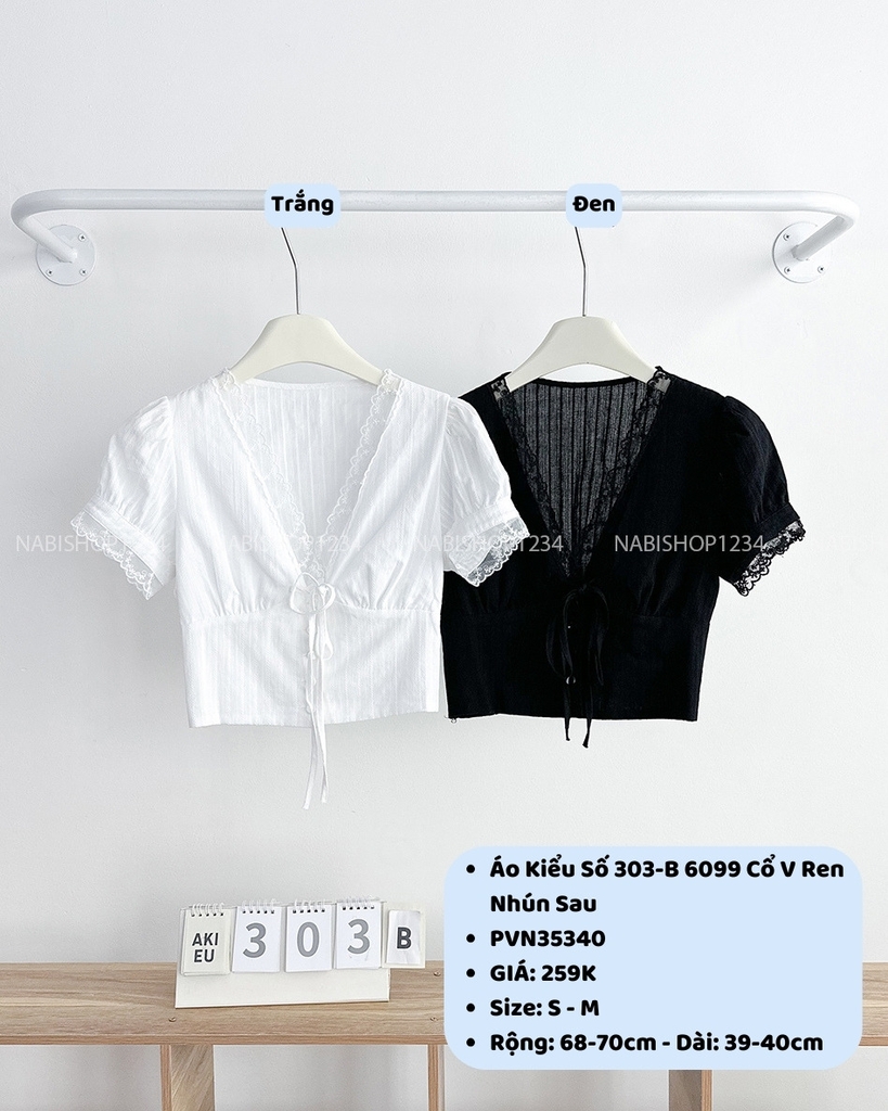 Áo Kiểu Số 303-B 6099 Cổ V Ren Nhún Sau