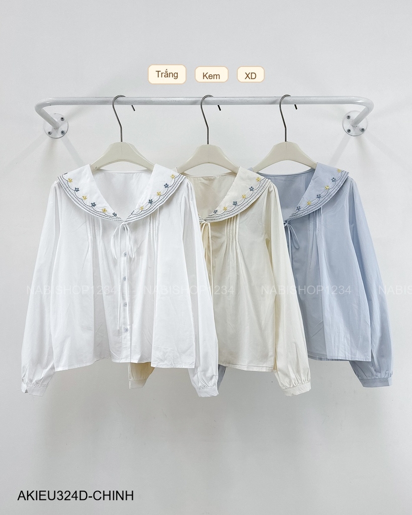 Áo Kiểu Số 324-D 520 TD Cổ Viền Thêu Hoa