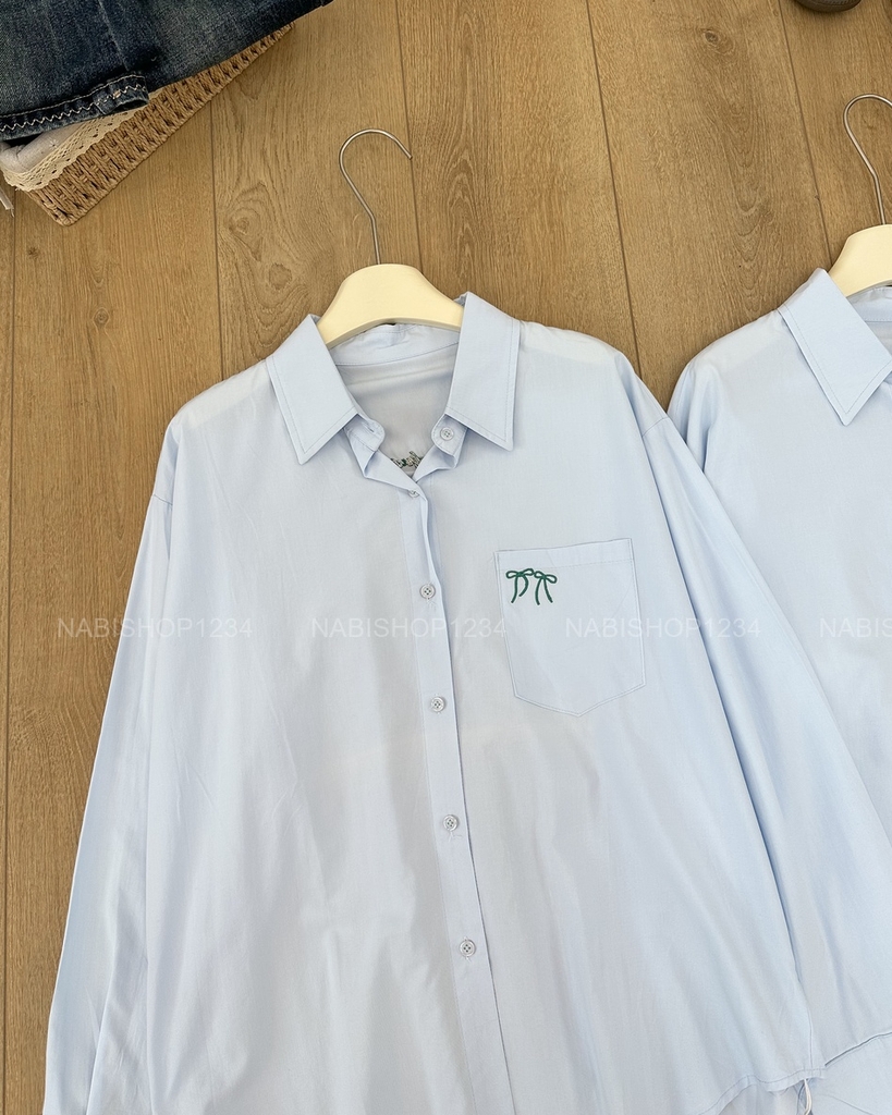 S20 Áo Sơ Mi Số 252-D 0023 TD Thêu Nơ Đôi