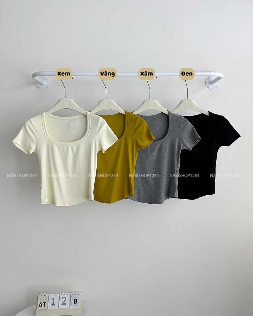 (S50%) Áo Thun Số 12-B 3738 Thun Gân Cổ Vuông
