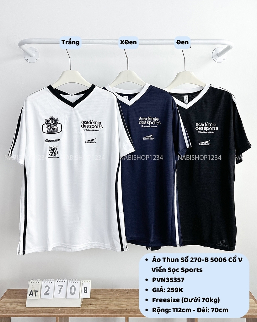 Áo Thun Số 270-B 5006 Cổ V Viền Sọc Sports