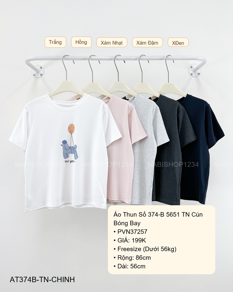 Áo Thun Số 374-B 5651 TN Cún Bóng Bay