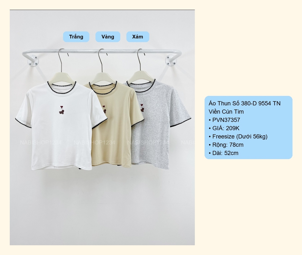 Áo Thun Số 380-B 9554 TN Viền Cún Tim