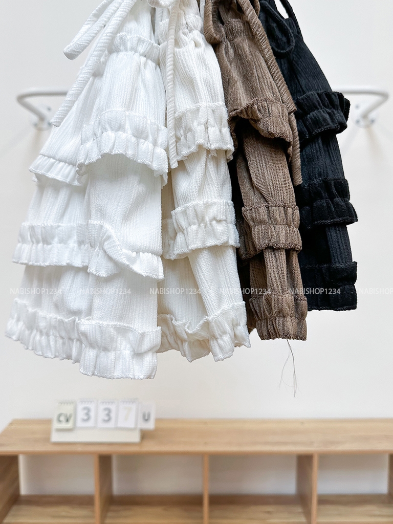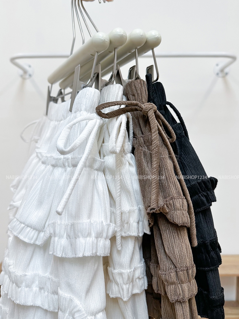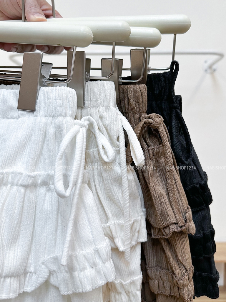Chân Váy Số 337-U 1597 Ngắn Nhung Tầng Nơ Eo