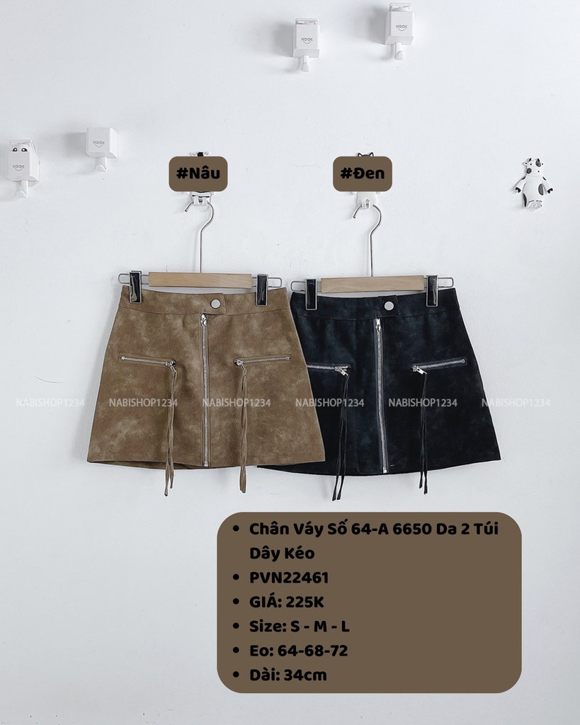 (S50%) Chân Váy Số 64-A 6650 Da 2 Túi Dây Kéo
