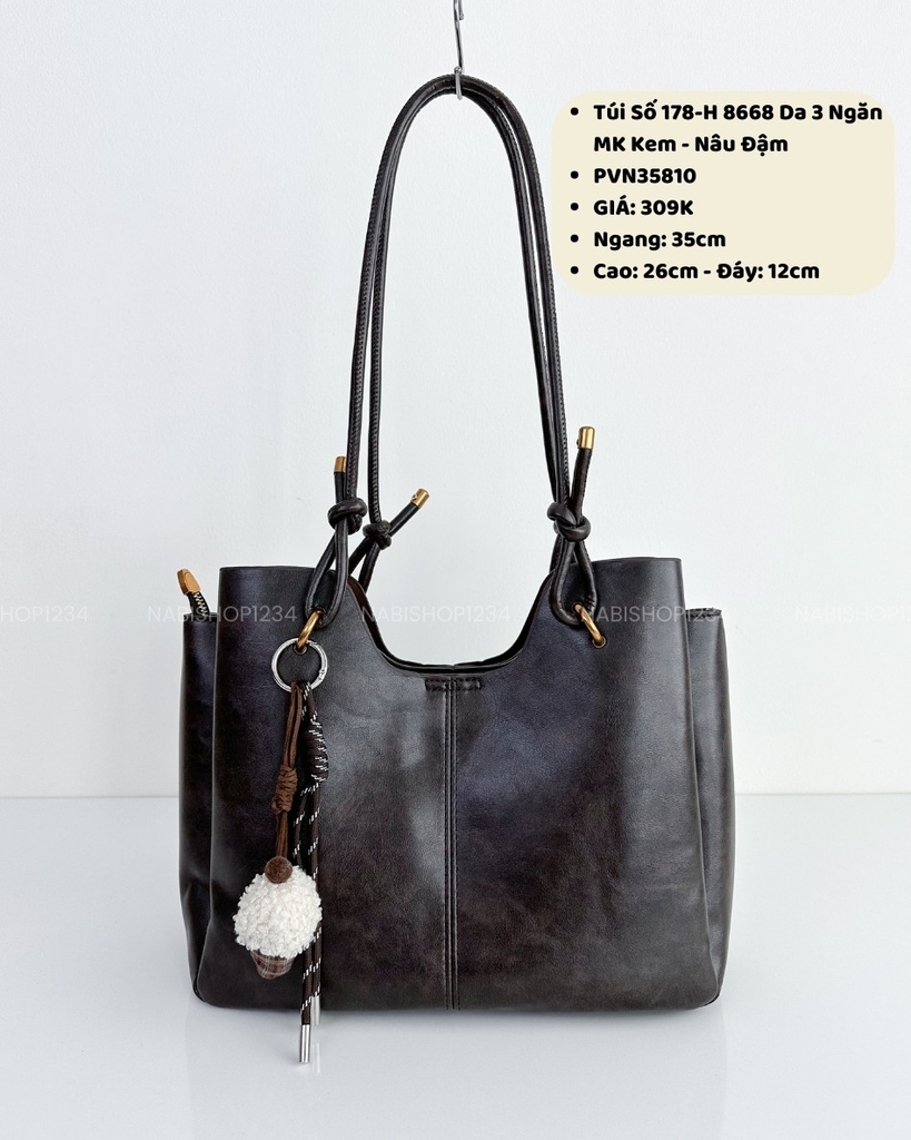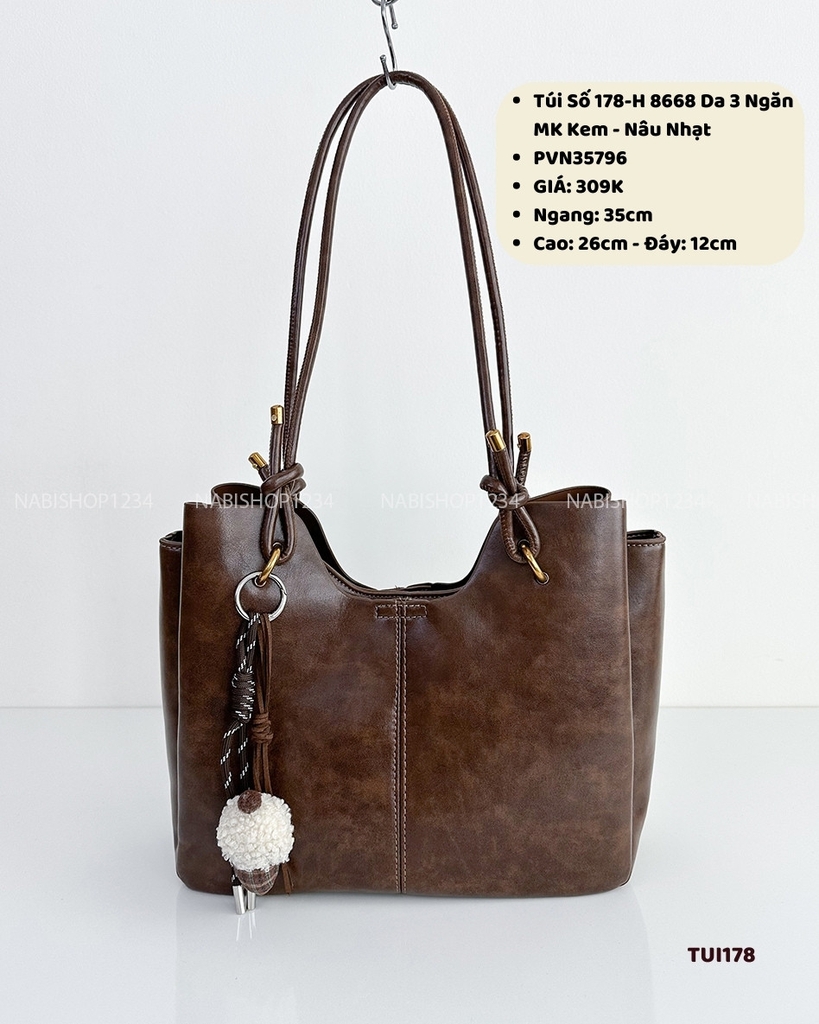 Túi Số 178-H 8668 Da 3 Ngăn + MK Kem